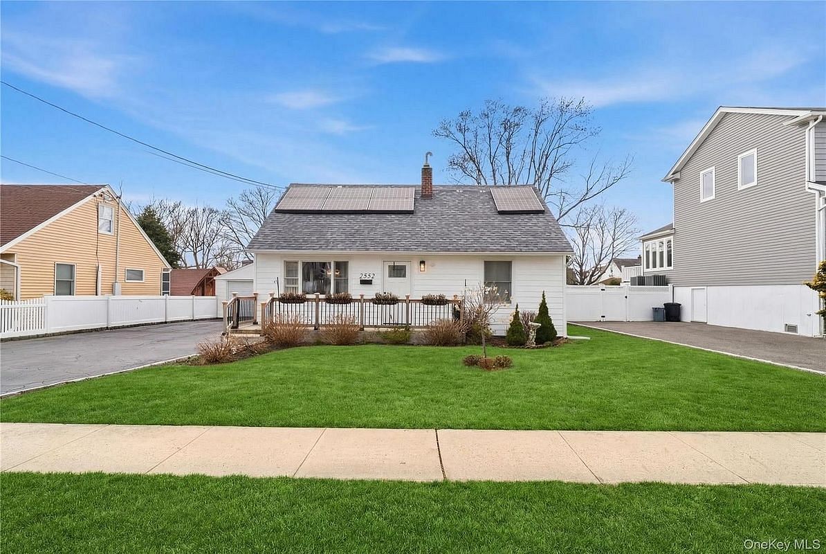 Welcome to this completely renovated & expanded cape on a beautiful tree-lined street in South Wantagh! This 1659 sq ft home offers 3 bedrooms plus a flexible 4th room ideal for an office along with 2 new modern bathrooms. The stunning kitchen features a Thermador refrigerator, Wolf range, modern drawer microwave, inset cabinets and peninsula waterfall island, opening to a bright rear extension living room filled with natural light and high hats—perfect for entertaining with sliders to the yard.