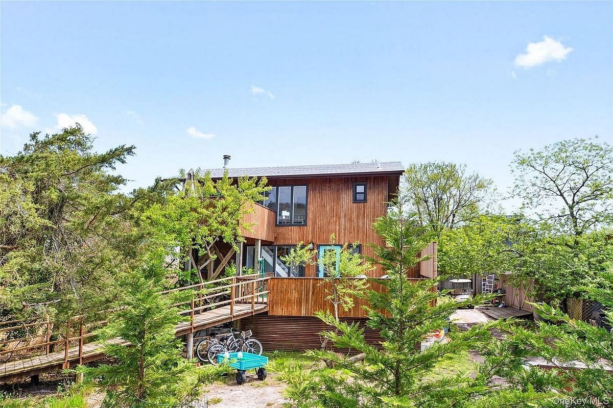 Bayview Seaview 5 Bedroom! This updated 2 story contemporary features 5 bedrooms, and 2 full baths. The highlight of the home is the open second floor great room, which features cathedral ceilings, a renovated kitchen with white shaker cabinetry, quartz countertops, & stainless steel appliances, wood burning fireplace, and spacious living and dining areas, all flowing out to the 2 spacious upper deck areas from which to enjoy the stunning views of the Great South Bay. Nothing can be built in front of the house so your views remain protected. Ideally located, just steps from the Seaview Ferry and Seaview Market, and a 4 minute walk to the beach, this home is the perfect place to enjoy your Summer! Additional amenities include hardwood floors, 2 updated bathrooms, separate laundry room, wall unit air conditioners and an outdoor shower. Affordable flood insurance, only $1,203/year. Enjoy all that the highly desirable community of Seaview has to offer including lifeguarded bay beach with pool & playground, clay tennis courts, softball field, marina, and lifeguarded Ocean beach.