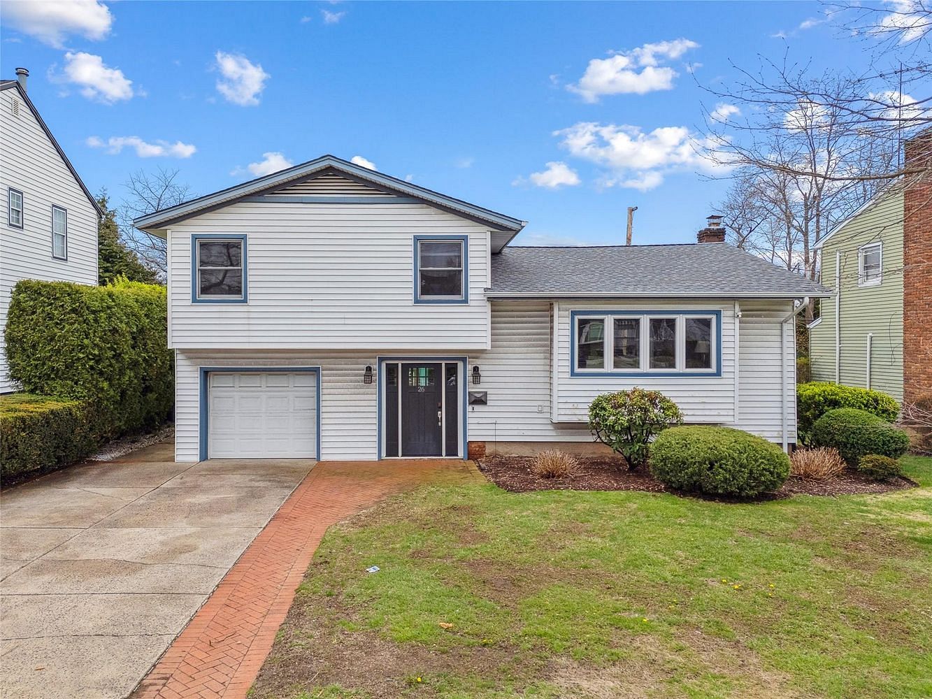 Upstairs, you’ll find three well-appointed bedrooms and a stylishly updated full bathroom. The lower level welcomes you with a gracious foyer, a den, a powder room, and large sliding doors that open to the backyard—perfect for relaxing or entertaining.