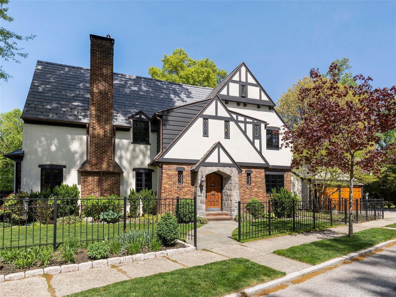 An architectural Tudor gem in the Hunts Woods neighborhood. Thoughtfully restored & renovated by the current owners. This 4 bedroom, 2 1/2 bath 2570 sq. ft. beauty will definitely impress the most discerning buyers. The first floor features a large formal living room with WBF. A renovated eat in kitchen featuring new cabinetry, quartz countertops, large island, Italian brass hardware, Kohler farm sink, Bertazzoni luxury professional grade stainless steel gas stove/range, refrigerator, dishwasher & microwave. A spacious formal dining room, fourth bedroom, 3 season sun room, office area and powder room complete the first floor. The primary bedroom suite is a spacious sanctuary with a dressing room, a large closet, renovated bathroom with double sinks, heated marble floors & glass shower enclosure. Two additional bedrooms and full hall bath complete the second floor. The third floor finished attic offers a bonus space. The partially finished walk out basement offers a family room with WBF. The bonus room, enclosed porch and basement family room add an additional 1323 sq. ft. of living space yielding a total of 3893 sq. ft. A detached two car garage with EV charging stations. The professionally designed fenced garden with slate patio is the perfect spot for outdoor entertaining. The structural features include a new slate roof (house & garage) with transferable lifetime warranty, European copper gutters, Unico central air system, Windsor Pinnacle architectural double pane high efficiency windows installed in 2018/19. An oil to gas conversion (completed April 2025) and a high efficiency natural gas boiler installed. Hardwood floors refinished throughout. This is a partial of list of the improvements; there are truly too many to list. Please see the full detailed list attached to the listing. A true gem. Taxes stated are without the Star credit.
