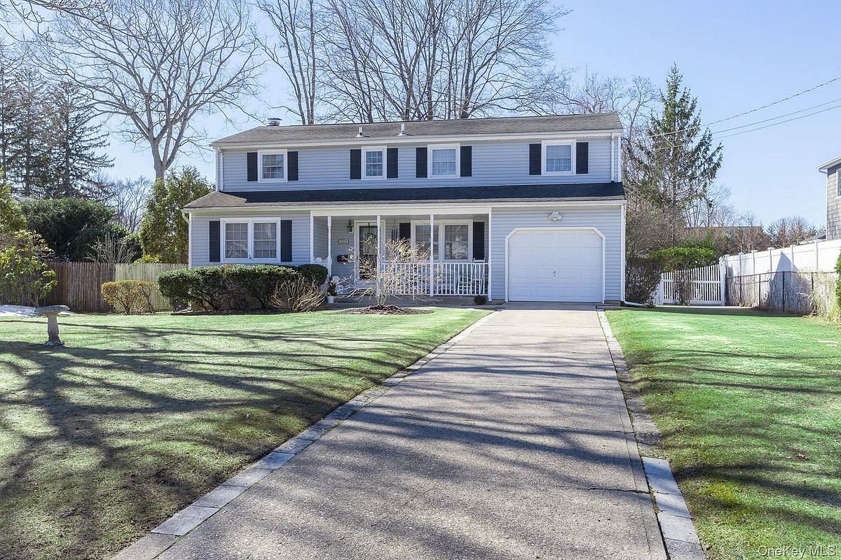 This cozy home is nestled in the quaint town of Saint James. Privacy is one of its' characteristics as it is set back from the road and has a large, fenced backyard. Since only a part of the backyard is finished, a large , tree filled area can be developed to accomodate a pool, athletic area or something of your choice.There are inground sprinklers front and back. The open floor concept of the kitchen and den invites friendly gatherings. The privacy of the dining room and living room makes for a cozy atmosphere.The attic is accessible from the upstairs hallway and there is a partial basement.