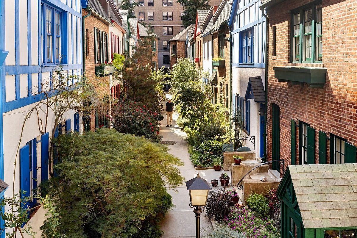 Enter through the wrought iron private gate on West 95th Street and step into Pomander Walk, a magical, landmarked enclave that feels like a secret garden tucked into the Upper West Side. With its Tudor-style cottages, colorful doors, and lush landscaping, the Walk offers a storybook setting unlike anywhere else in Manhattan.