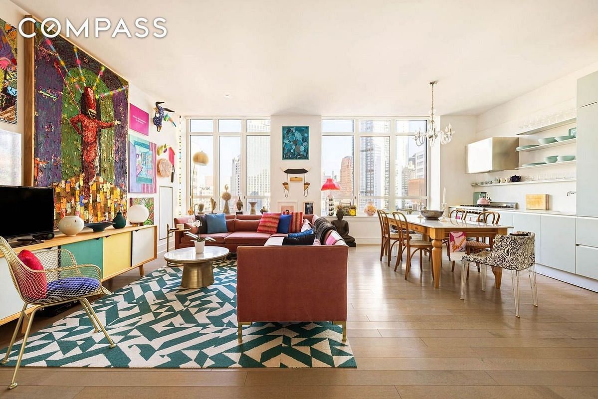 Entirely unique to The Boreum, Apartment 1508 is a gloriously proportioned split two-bedroom, two-and-a-half-bath home where the foyer doesnt just shove you straight into the living room. Here you can ceremoniously kick off your shoes, stow your coat in a custom closet, surrender your keys on a beautiful consoleand pause to admire Katie Bells captivating installationbefore washing up and sneaking that first peek at your lofty Downtown Brooklyn panorama.
