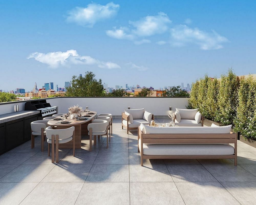 Introducing 265 Weirfield, an intimate collection of just ten residences crafted from the ground up for modern Brooklyn living. Defined by its striking architectural facade, oversized windows, and abundant outdoor space, the building has been designed to perfectly frame every viewwhether overlooking the leafy treetops of Irving Square Park or capturing sweeping skyline vistas from most residences. Inside, expansive layouts, marble kitchens with integrated appliances, spa-inspired baths, and abundant closet space create homes that are as functional as they are beautiful. Residence 4A is a penthouse jewel that pairs 679 square feet of interiors with an extraordinary 379-square-foot private roof terrace, offering panoramic views of both Irving Square Park and the Manhattan skyline. Inside, the open living and dining area is bathed in natural light through oversized windows, creating a bright and airy environment. The marble kitchen, with sleek cabinetry and integrated appliances, blends design and utility, making it as suitable for daily cooking as for entertaining. The bedroom is generously sized and designed as a peaceful retreat, while the spa-inspired bath features oversized shower, modern tiling, and elegant fixtures. Abundant closet space and washer/dryer add convenience, making this penthouse residence as functional as it is luxurious. The expansive roof terrace elevates the home into something truly speciala private sanctuary in the sky where you can dine under the stars, host intimate gatherings, or simply relax against the backdrop of Brooklyns treetops and Manhattans skyline. Directly overlooking Irving Square ParkBushwicks town square265 Weirfield enjoys one of the neighborhoods most desirable addresses. The park spans an entire city block and is beloved for its shaded lawns, lively playground, and community gatherings. Steps beyond, Bushwick pulses with creativity, offering acclaimed restaurants, cozy cafes, art galleries, and nightlife. The Halsey Street L train ensures quick access to Manhattan, blending the energy of Brooklyn with seamless connectivity. At 265 Weirfield, boutique scale meets elevated designdelivering a rare opportunity to own a home that is intimate yet expansive, with every detail crafted for modern city living.