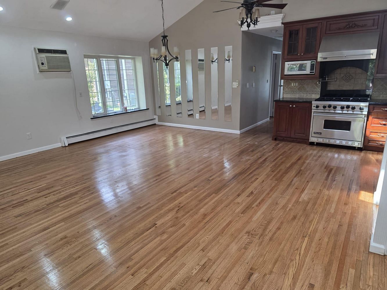 Beautifully updated waterfront home features 3-bedroom, 2-bathroom. Fully decked above ground pool, large shed with electric, private driveway with plenty of parking. The house is larger than as it appears. Kitchen/ living room open concept with skylights, wood flooring throughout, vaulted ceilings and much more. Above ground pool. Full finished basement with separate entrance, Eat in Kitchen, living area, and 2 extra room. Perfect for extended family. Close to shopping centers beaches. MUST SEE!