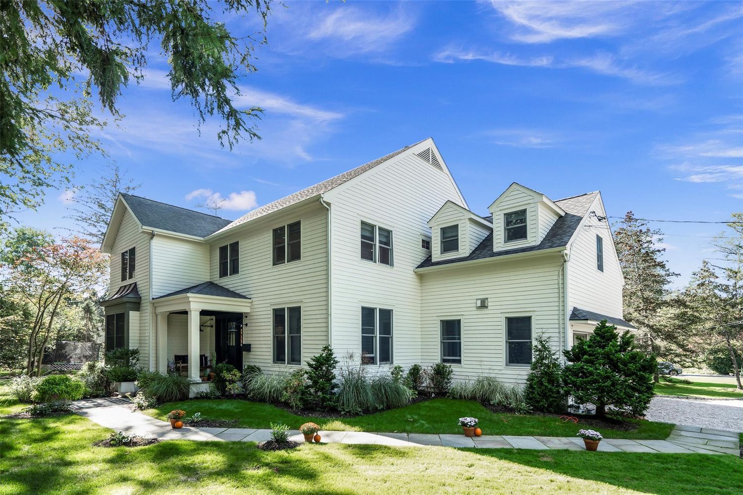 A perfect blend of East Coast charm and West Coast style ~ Ideally located in the heart of town ~ thoughtfully renovated by the homeowner, who is a sought after interior designer. This tasteful center hall colonial exudes a laid-back California feel with abundant natural light, large windows, open floor plan and skylights throughout. Enjoy the ultimate in convenience—walk to schools, town, train, and the beach. Embrace the small-town lifestyle with Friday night lights and community spirit right outside your door. This Center hall colonial features 4 bedrooms on second floor w/ additional in LL, private sitting porch, bluestone patio for entertaining under the twinkle lights, and inviting front porch. BE THE HOUSE, where everyone comes after school to hang and relax in the massive lower level- from movie watching, lego building, working out or just relaxing with friends. Easy for entertaining with the massive center island and open everyday living floor plan. Kitchen designed for the most discerning cook. Enjoy a bottle of perfectly chilled wine as you prep dinner. IT IS the HEART of the HOME! This home is full of character and custom features that set it apart. A charming double Dutch door welcomes you in, while an indoor swing adds a playful, unexpected twist. The thoughtfully designed primary closet offers dual access points—perfect for slipping in and out without disturbing your sleeping partner. A custom mudroom with patterned tile and handcrafted wooden hooks adds both function and flair. Every detail has been curated to blend style, comfort, and everyday practicality.
