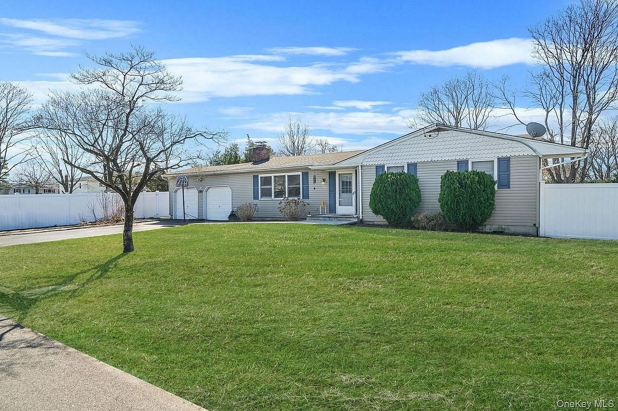 Welcome home to your 3 bedroom 2 bathroom ranch in Bohemia! This home features a 2 car garage, wood burning fire place, central air and a relaxing all season sunroom. Cool off those hot summers with a dip in your in-ground pool equipped with a new liner, electric, and lights. Just shy of a half acre this backyard is perfect to host your next barbecue! Solar panels yield an impressively low electric bill. Recent updates include front PVC fence with double-gate, walkway, wi-fi sprinkler system, new kitchen appliances, washer/dryer, flooring and more! The very spacious finished full basement is perfect for extra living or take advantage of the separate outside entrance for a possible accessory apartment with proper permits. This home is conveniently centrally located to Connetquot State Park, south shore beaches, MacArthur Airport, shopping, restaurants, and the newly renovated and lively LIRR hub!