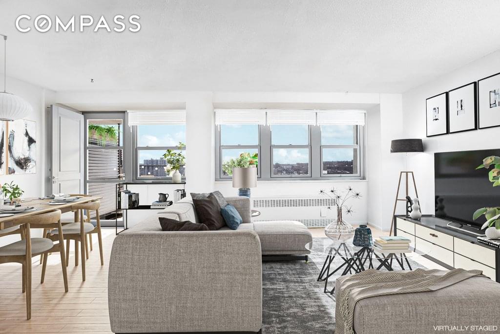 Lovely Entry leads you into the welcoming main Living area with a wall of SE facing windows this is sky country, y'all. Great layout, with the Kitchen accessible from the Entry hall and opening into the Dining/Living area perfect when serving guests. Two generous and bright bedrooms, Primary has two exposures, and a view ALL the way downtown. S and E orientation for excellent light and air flow throughout the day and abundant closets throughout.