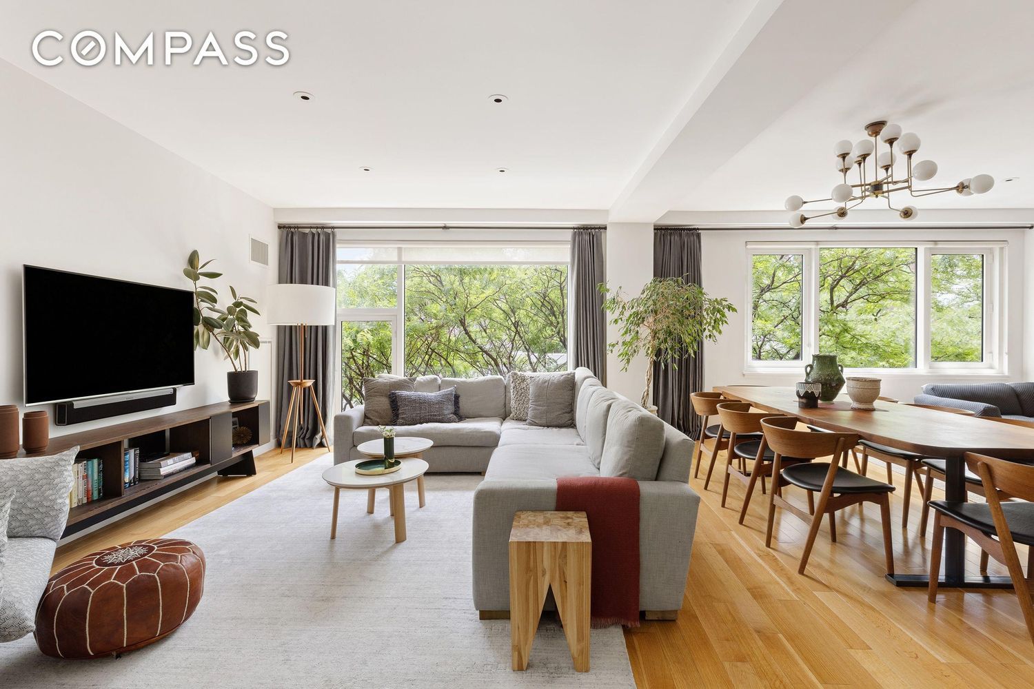 Welcome home to residence 4B, a bright, mint-condition condo in Sackett Union, Carroll Gardens premiere full service building. Spanning 1,922 square feet, this oversized home is ideally laid out with expansive living space and well proportioned bedrooms, with all rooms overlooking the trees of Union Street. The great room features 34 of south facing frontage, which accommodates rare entertaining spaces. Flanking the living space is a large open kitchen, including a vented six-burner Wolf range, a Sub-Zero refrigerator, custom cabinetry, and an additional pantry for storage.