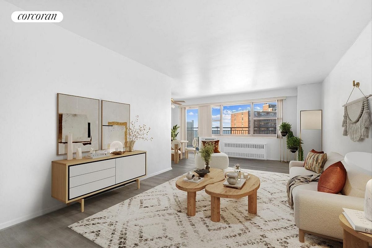 Enjoy living in a beach community while staying in Brooklyn. This unit features a spacious living room (19'4" x 24') that can be furnished to your distinguished taste. The sun-soaked space offers western exposure with sweeping, cinematic views of the ocean and the iconic amusement park. There is also a charming dining nook-perfect for starting your mornings with a cup of coffee and an ocean breeze flowing through the terrace door.