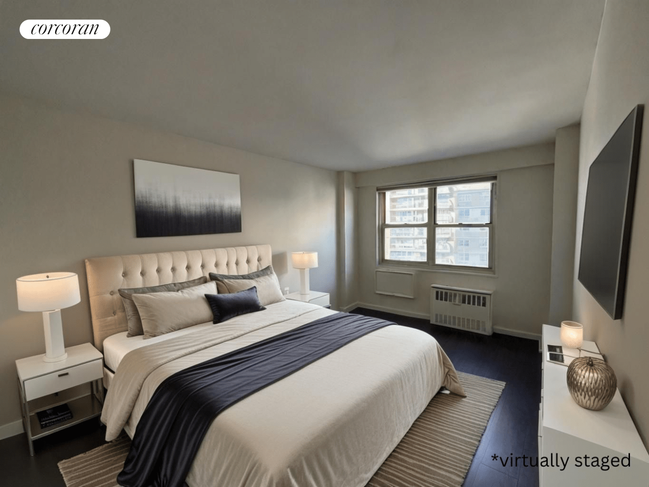 This spacious high-floor apartment invites you into a meticulously maintained complex, distinguished from others nearby by its impeccable order and thoughtful regulations. From the beautifully landscaped surroundings and polished corridors to the pristine lobby, each detail enhances the pleasure of arriving home at this serene retreat. While the apartment enjoys views of a twin building, there is a hidden vantage point offering a delightful glimpse of the ocean.
