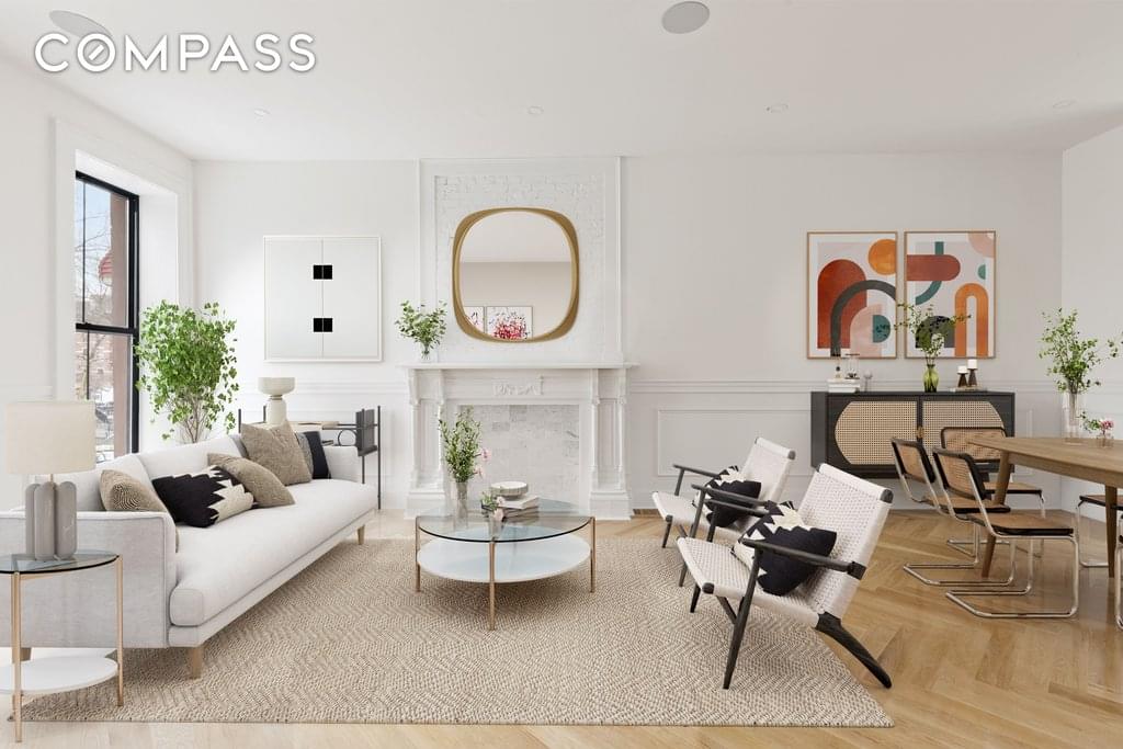 This townhouse is a two-family brownstone that features 5 bedrooms, 3 full bathrooms, 1 powder room, an expansive backyard garden, and a large parlor deck. From the beautiful decorative fireplace to the herringbone oak flooring, attention to detail can be found throughout this incredible home.