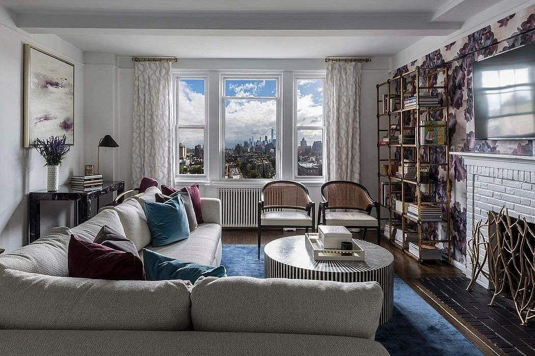 One of the most desired layouts in the building, the E-line residence is prized for its generous proportions, ideal floor placement, and architectural character. The home is anchored by a sunken living room that creates a warm and inviting sense of distinction, centered around a wood-burning fireplacea signature feature of this celebrated prewar design.