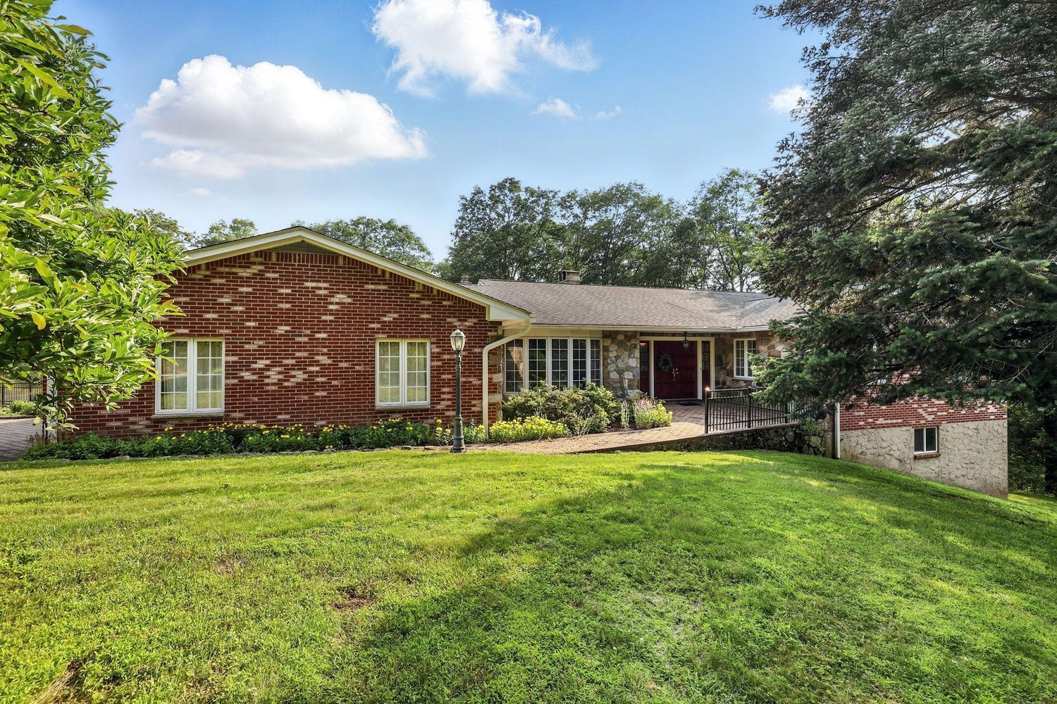 Welcome to 3 David Rd, stone pillar entry with brick paver driveway to builders own. Mature trees & shrubs throughout property. Full brick exterior construction with veneer cut stone double door entry porch. Spacious welcoming foyer, French doors that lead to a gracious formal dining room perfect for large family gathering with bay window. Family room with pegged hardwood floors to add to the charm & a fieldstone fireplace with built-in's & raised hearths with slider door to a solid built wrap around deck and handmade built in brick barbeque. Large Eat-in kitchen with custom cabinetry & granite counters and all stainless steel appliances, double ovens, built in desk area, slider to deck, Spacious hall off kitchen that leads to a very large Laundry room/Mud room and door out to driveway and a half bath. In hall separate door which leads to a 2 car garage. Huge Formal Living room with hardwood floors, crown moldings through out, Brand NEW Central-Air, (just installed) and new water hot water heater. Extra wide hallway with plenty of extra closets that leads to primary bedroom with a full bath and huge walk-in closet and 2 huge extra his & her closets. 2 additional bedrooms and full hall bath. Huge basement in lower level with 8 ft ceilings, ready for future additional living space with brick fireplace, wine cellar, slider door to yard that overlooks beautiful fruit trees such as pear ,fig, apple & 2 plus acres with private woods and large fenced in vegetable garden, extensive stonework outside. This Home offers the ease of One Level Living, immaculate well maintained by original owners, located in sought after neighborhood. Not to be missed, you will not be disappointed!