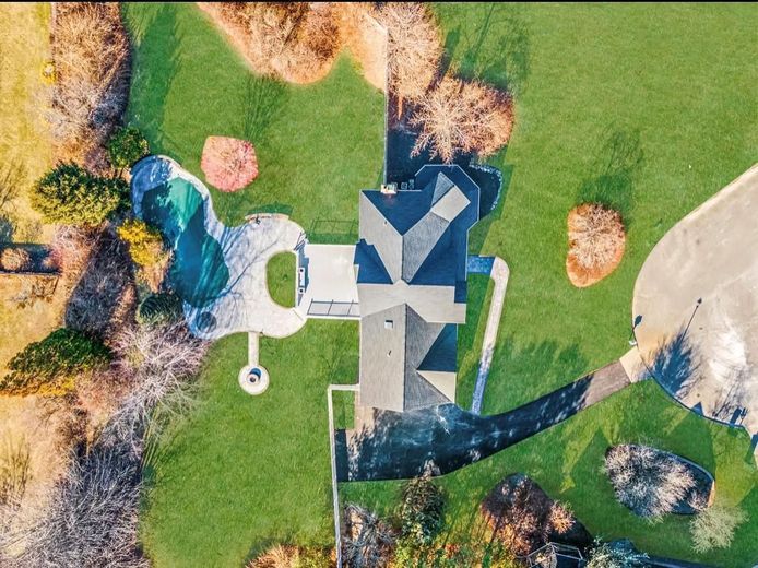 Outdoors, enjoy the beautifully landscaped backyard oasis, complete with an inground pool featuring a serene waterfall perfect for summer gatherings. The 2 car garage with high ceilings is perfect for any car enthusiasts. The wraparound front porch adds charm and curb appeal, inviting you to enjoy peaceful mornings with a cup of coffee.