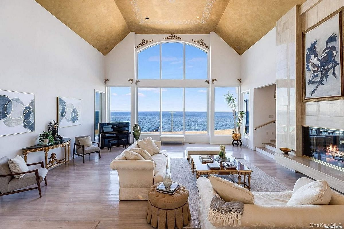 One Of The Prime WATERFRONT Parcels Of Land In Lloyd Harbor Village, This Tremendous Mansion Has Over 200 FT Of Coastline And Features An Upper And Lower Beach Area!!!! This Exceptional Property Is Located Within The Luxurious Seacrest Estates Section And Is A Full Steel On Concrete Construction. This Home Featuring High End Finishes, Is One Of Only 4 Homes Within The Estates That Has A Level Yard, And Is Only A Short Drop To Sea Level (No Flooding or Flood Insurance Required). Additionally, There Are No Erosion Or Sea Wall Issues. The View Is Spectacular, With Sweeping Vistas To Connecticut And The Long Island Sound From Every Level Including The Lower Level. The Private Beach Is Accessed By A Pathway Just A Short Walk Away. This Home Is Constructed Of Brick, And Has Soaring Ceilings Framed By Huge Glass Windows Which Are Storm Resistant, Affording A Light-Flooded Space. The Oversized Principal Rooms (10 Ft or More) Are Elegant, And The House Is Constructed To Offer Magnificent Waterviews From Every Room. The Kitchen Has Custom Solid Wood Cabinets, Designer Appliances (Miele, Viking, Wolf), A Custom Fireplace And Mouldings, And An Enclosed Garden Room For Easy Outdoor Living. There Are 2 Primary Suites Possible, A Downstairs Suite With 2 Walk In Closets And 2 Bathrooms, And A Jr Upstairs Suite. Every Bedroom Has An Ensuite Bathroom. The Basement Is An Entertainers Paradise With A Wet Bar, A Gym, A Temperature Controlled Wine Cellar, And A Huge Space For Entertaining With A Bathroom, And Plenty Of Storage. There Are Limestone Floors Throughout The House, And High End Cabinetary As Well. Caumsett State Park And Target Rock Park Are A Minute Away. Caumsett Offers Riding, Hiking And Biking Trails. Huntington Village With World Class Shopping, The Paramount Theater, And Over 50 Restaurants Is 15 Minutes Away. The LIRR Station Is a 55 Minute ride Into NYC, And The LIE Also Offers A 45 Mile Drive Into NYC. Additionally Lloyd Harbor Beach With A Dock And Moorings Summer Camp, Tennis and PickleBall Leagues, BBQs, And Showers And Changing Rooms Is Also Part Of The Lifestyle Afforded To Residents Of This Home., Additional information: Appearance:MINT,Separate Hotwater Heater:Y