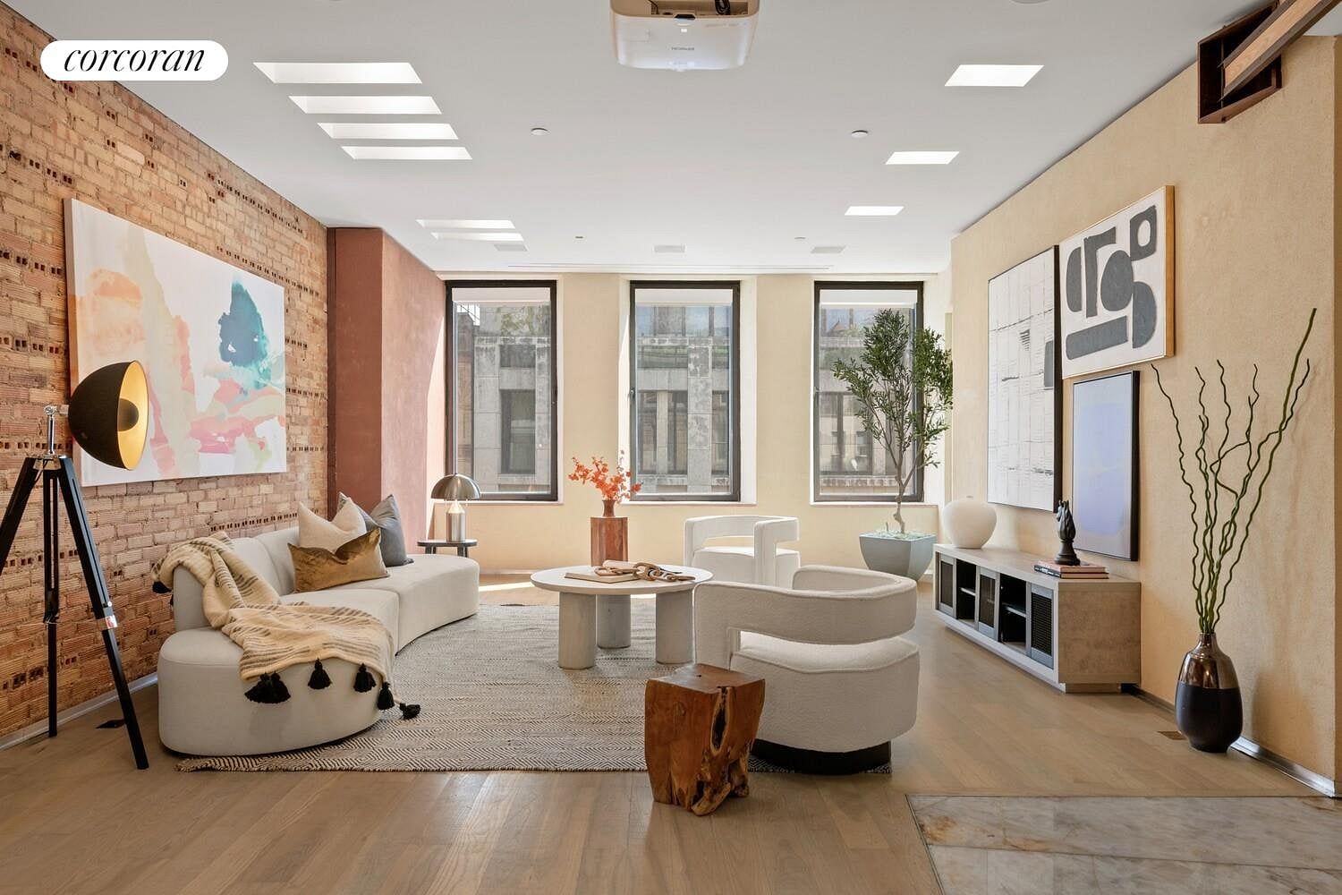 Explore a rare opportunity to live on highly sought after Bond Street in NoHo! This full-floor loft apartment at 30 Bond Street with 4 exposures is a 2-bedroom, 2-bath home, with 2 additional sleeping areas. Its renovation seamlessly blends the timeless appeal of prewar architecture with refined, industrial design. Accessed via a private key-lock elevator, the expansive home features soaring 10-foot ceilings, exposed brick, oversized windows, and wide-plank white ash flooring. The center of the loft is anchored by a striking chef's kitchen draped in stunning Brazilian quartzite, custom cabinetry, and premium appliances including a Sub-Zero refrigerator, Wolf 5-burner range, and Miele dishwasher and speed oven. The spacious great room, complete with projection screen, is ideal for both grand entertaining and everyday living. Functional and modern upgrades include multi-zone central A/C, custom remote solar blinds, and dimmable Lutron lighting throughout. Find brilliant artistic accents as well, including rounded walls clad in natural materials, deep-set lighting wells, and a functional re-use of former window openings.