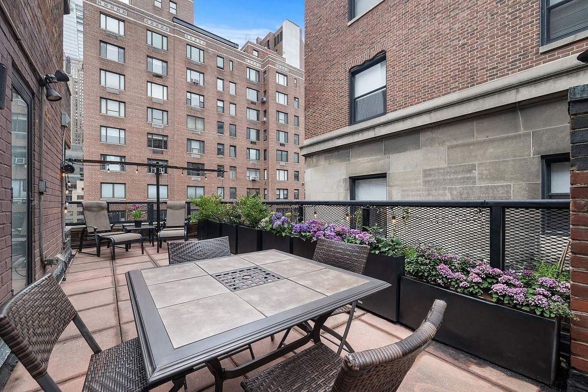 Perfectly positioned between Madison and Park Avenues, and nestled between the Morgan Library and the Union League Club, this standout residence pairs modern interiors with two rare private setback terraces that define this spacious home. The larger terrace is a true outdoor living roomgenerously sized and beautifully planted with eight containers, ideal for entertaining or relaxing under open sky. A second, more intimate terrace off the primary bedroom offers a quiet, private retreat.