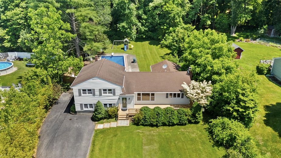 Are you ready for summertime fun? Welcome to this oversized split-level gem in Yorktown Heights. This beautifully maintained 3-bedroom, 2-bath home offers the perfect blend of comfort, style, and functionality. Pride of ownership is what you'll find with refinished hardwood floors, freshly painted and located in the Yorktown School District. Nestled on a private lot with a gorgeous fenced-in backyard, this property features an 20'x40' in-ground pool and serene views overlooking Stuart's Farm—ideal for relaxing or entertaining. Step inside to discover an updated kitchen with stainless steel appliances and quartz countertops/backsplash, a formal dining room, and a great room boasting cathedral ceilings and a cozy fireplace. The home office/den with sliding doors opens directly to the patio, creating a seamless indoor-outdoor flow. Additional highlights include: hardwood floors throughout, freshly painted interiors, new doors, generously sized bedrooms, lower level family room, laundry room, and ample storage space. Located in the sought-after Yorktown School District, this home combines privacy, space, and convenience in one exceptional package. All of this and convenient to town shopping, restaurants, mall shopping, parks, schools and parkway. Don't miss it!