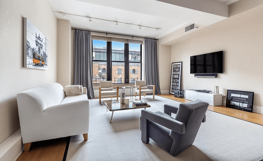 Head to the spacious and serene master suite to find more north-facing bridge views, as well as a massive walk-in closet and a luxe marble bathroom with jetted soaking tub, separate shower and double vanity. Two oversized interior rooms flank the second well-appointed full bathroom and a massive laundry room with an in-unit washer-dryer. Abundant additional closet space and central air ensure effortless living in this gorgeous DUMBO home.