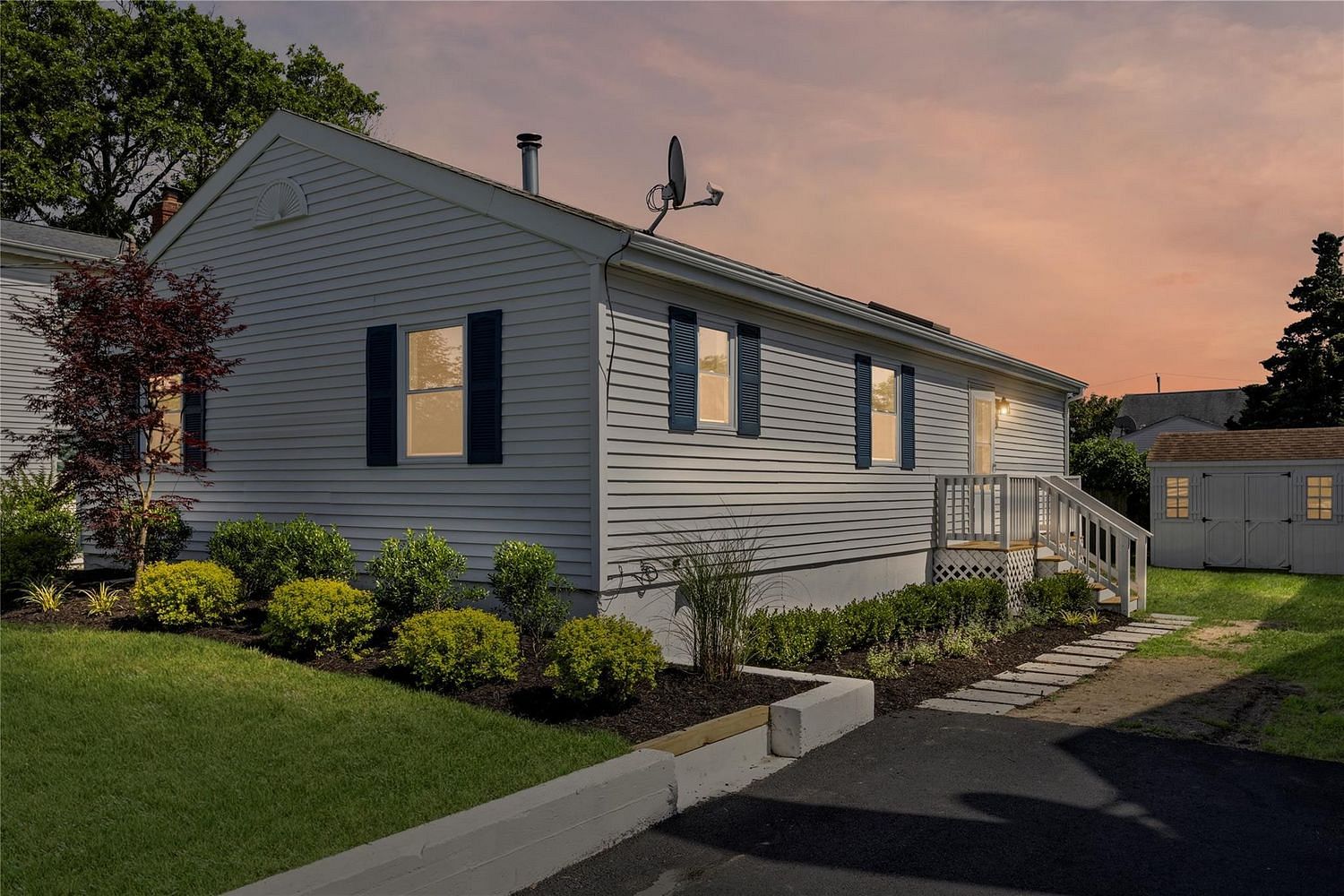 Newly Renovated Home Just Minutes from Smith Point Beach! Step into coastal comfort with this beautifully updated 3-bedroom, 2-bathroom home, perfectly situated near the shores of Smith Point Beach. Thoughtfully renovated from top to bottom, this home combines modern elegance with everyday functionality. The brand-new eat-in kitchen is a standout feature, showcasing quartz countertops, soft-close drawers, a pantry with roll-out sliders, stainless steel appliances, and a convenient breakfast bar. Just off the kitchen, the formal dining room shines with a modern chandelier and sliding glass doors that lead to the backyard — ideal for entertaining or relaxing evenings at home.