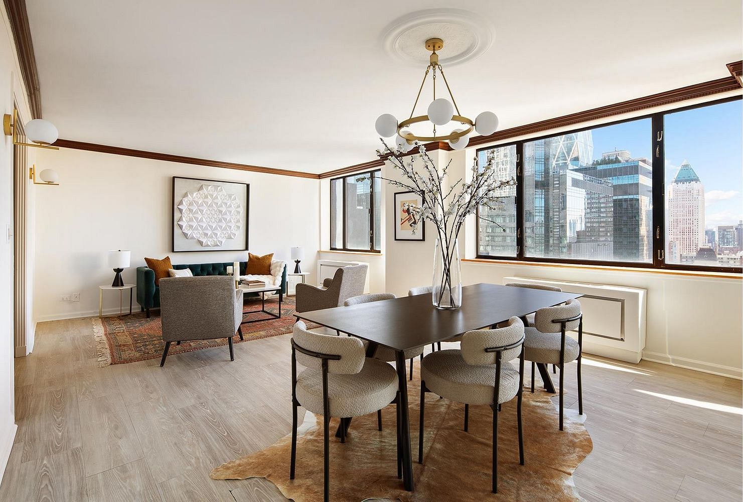 Perched high on the 29th floor of the white-glove The Beaumount Condominium, rests this luxurious 2 bedroom 2 full bathroom featuring walls of windows, tons of natural light, and stunning panoramic views of the city skyline, including iconic landmarks like the Central Park, Midtown Manhattan and the Hudson River! The finely-designed, unique A-line residence boasts a bright, open and airy layout for modern living and entertaining.