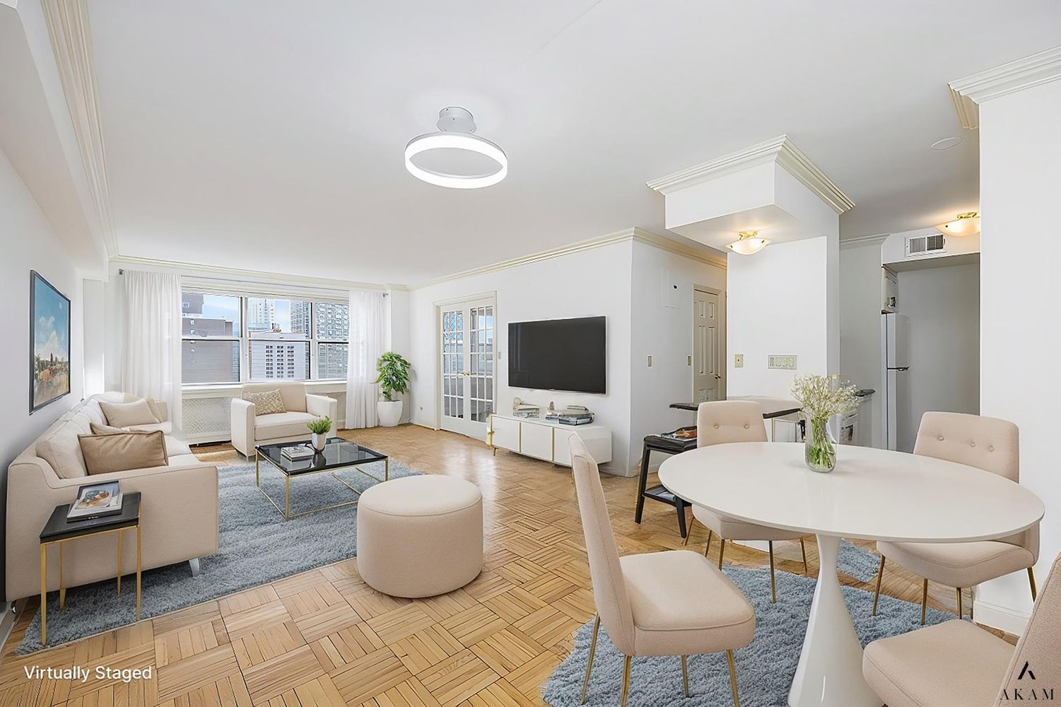 Step into a spacious and comfortable two-bedroom, two-bath apartment located on a high floor at The Theso Co-op. This sunlit and extremely quiet home features a wall of windows that offers unobstructed Eastern city views. The open kitchen is equipped with new appliances, granite countertops and a breakfast bar. Also, this home has renovated bathrooms and parquet floors throughout. The second bedroom has built in bookshelves which can be used as a home office or bedroom. Additionally, there is an abundance of closet space, including a large walk-in closet in the primary bedroom, with a bathroom ensuite. This lovely home is ready to move into, but it can reach its full potential with your selected upgrades. . Please note that additional photos of the living room and bedrooms have been virtually staged.