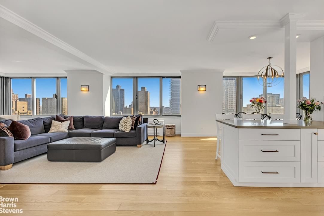 Enjoy spectacular views & natural light all day long from this corner oversized 4-bedroom, 3-bath home with eastern, southern & northern panoramic city/river/skyline views from the 21st floor. This turnkey renovated home features a sprawling living room with breathtaking views, private balcony and outdoor space, renovated open concept kitchen with brand new state-of-the-art Thermador appliances, and three full marble bathrooms. Additional features: enjoy oversized windows allowing for natural light all day long, custom electric solar shades, abundant closet & storage space, and beautiful 5 inch wide oak wood floors. There is a dedicated laundry room with washer/dryer in unit. This special custom home is a one-of-a-kind layout in the building.