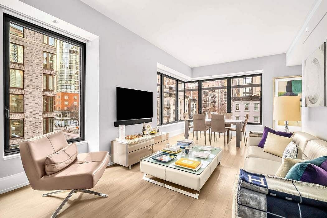 This stunning 1,564 +/- square-foot corner residence at 301 East 50th Street offers an exceptional two-bedroom, two-and-a-half-bath layout with beautifully proportioned interiors and refined finishes throughout. The home features 10-foot ceilings, five-inch wide-plank solid oak floors, motorized shades, multi-zone heating and cooling, eight-foot solid-core doors with Nanz hardware, and city-quiet low-e glass windows. A stately foyer leads into a sun-filled corner living and dining area with open city views, creating a serene and sophisticated setting for everyday living and entertaining.