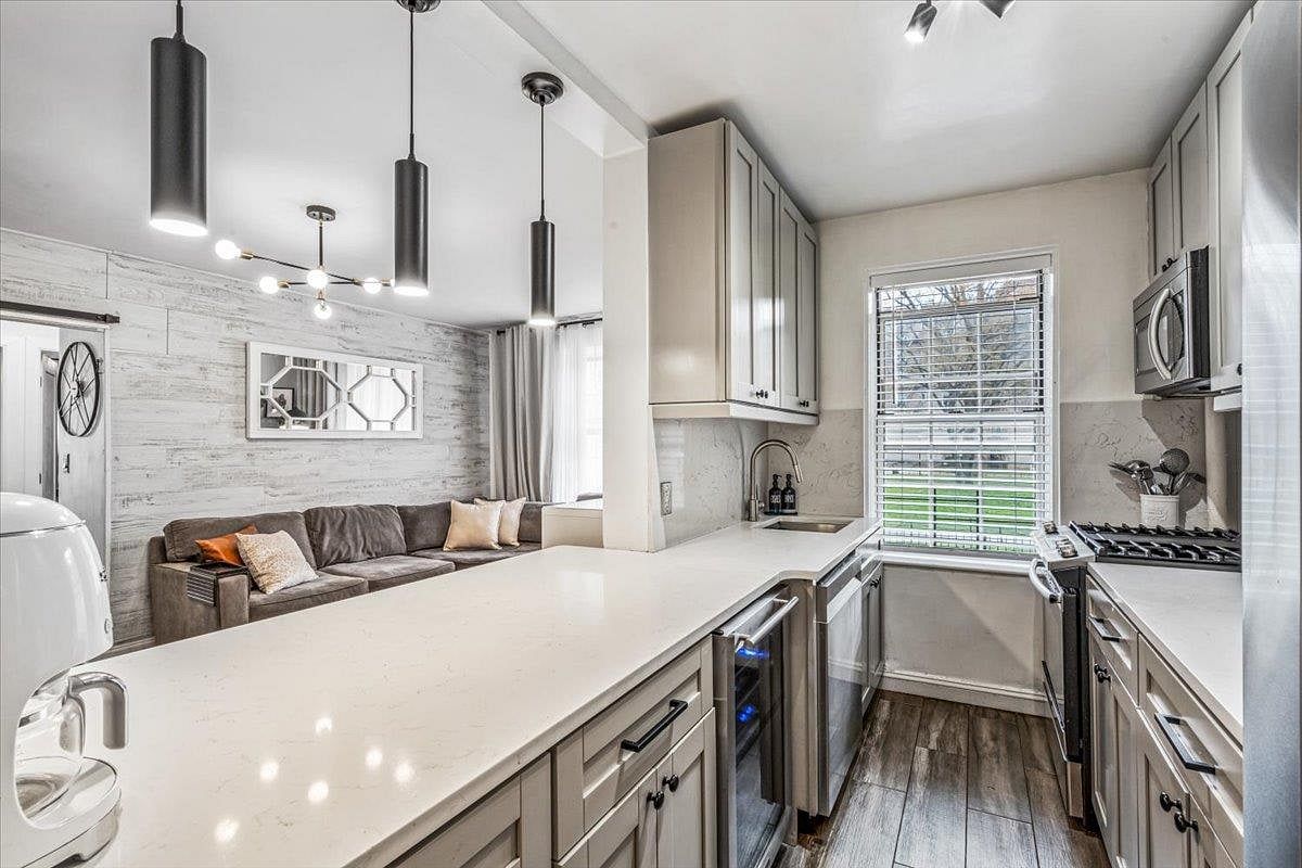 Stunning and Chic! This Impeccably Designed, Fully Renovated Unit Boasts an Amazing Kitchen with Quartz Counters, Wood Cabinetry with Slide Out Shelving, New Refigerator and Dishwasher and a Bonus Wine Fridge. Relax and de-stress in the Spa-Like Bath. Luxury Vinyl Floors throughout, A Water Filtration System is in Place and Modern Light Fixtures have just been added. Each Bedroom has Custom Closets, as well as an Expanded Closet located across from the Bathroom. Huge Laundry Room is located in the Windowed Basement.