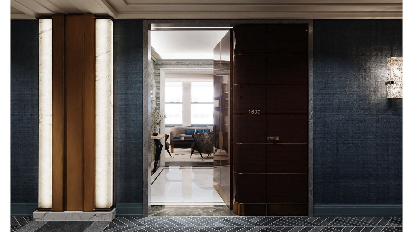 Designed by internationally acclaimed designer Jean-Louis Deniot, residences combine modern comfort with signature features such as a dedicated Concierge Closet and keyless entry with opulent details like ceiling coves, herringbone floors, oversized custom-paneled doors, spacious walk-in closets, and grand entry foyers with marble floors and brass inlays.