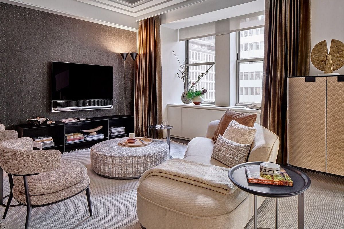 Designed by internationally acclaimed designer Jean-Louis Deniot, residences combine modern comfort with signature features such as a dedicated Concierge Closet and keyless entry with opulent details like ceiling coves, herringbone floors, oversized custom-paneled doors, spacious walk-in closets, and grand entry foyers with marble floors and brass inlays .
