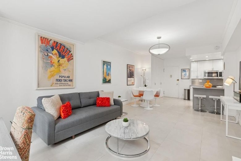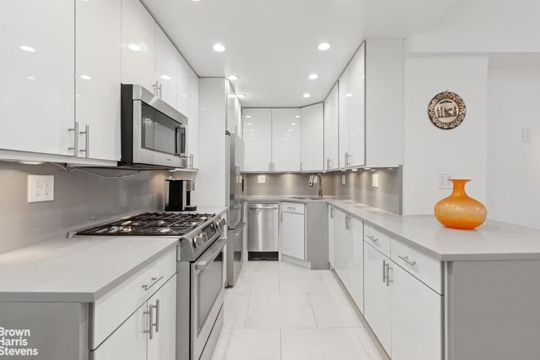 Apartment #18H is a turn-key one bedroom apartment with approximately 725 square feet of living space. The modern kitchen boasts stainless steel appliances by Bosch and Fisher Paykel, Quartz countertops, sleek white cabinetry, and tile floors.
