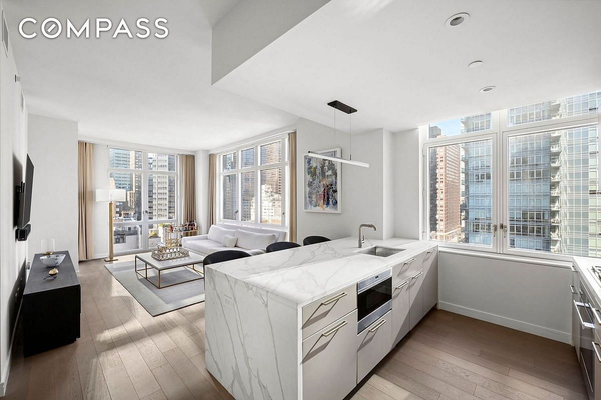 Sophisticated and elegant, this corner one-bedroom residence at the full-service Halcyon Condominium offers sweeping open city views and exceptional natural light throughout the day. Encompassing 953 square feet, the home provides an impressive sense of space with its generously proportioned north- and west-facing rooms.