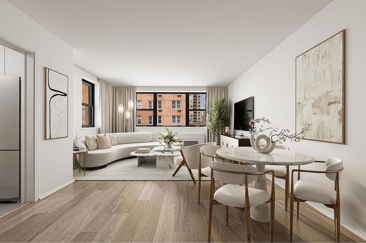 Spacious and very charming, approximately 700 sq ft, one-bedroom, one-bathroom, with north and west facing exposures and both windowed kitchen and bathroom. This corner apartment is exceptionally bright with natural light throughout the day and a layout that effortlessly balances comfort and functionality.