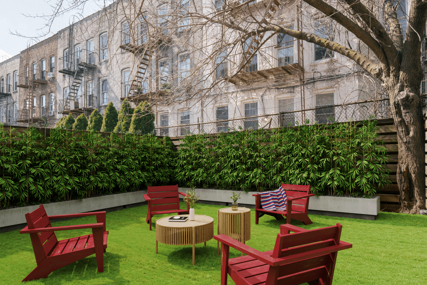 Welcome to this stunning duplex at the 18th Ward, a boutique condominium in vibrant Bushwick. This spacious one-bedroom home plus den with a large recreation room features a multi-level private outdoor space, perfect for entertaining or relaxing. The open living area boasts white oak hardwood floors and floor-to-ceiling windows offering tranquil views of your private garden and patio.
