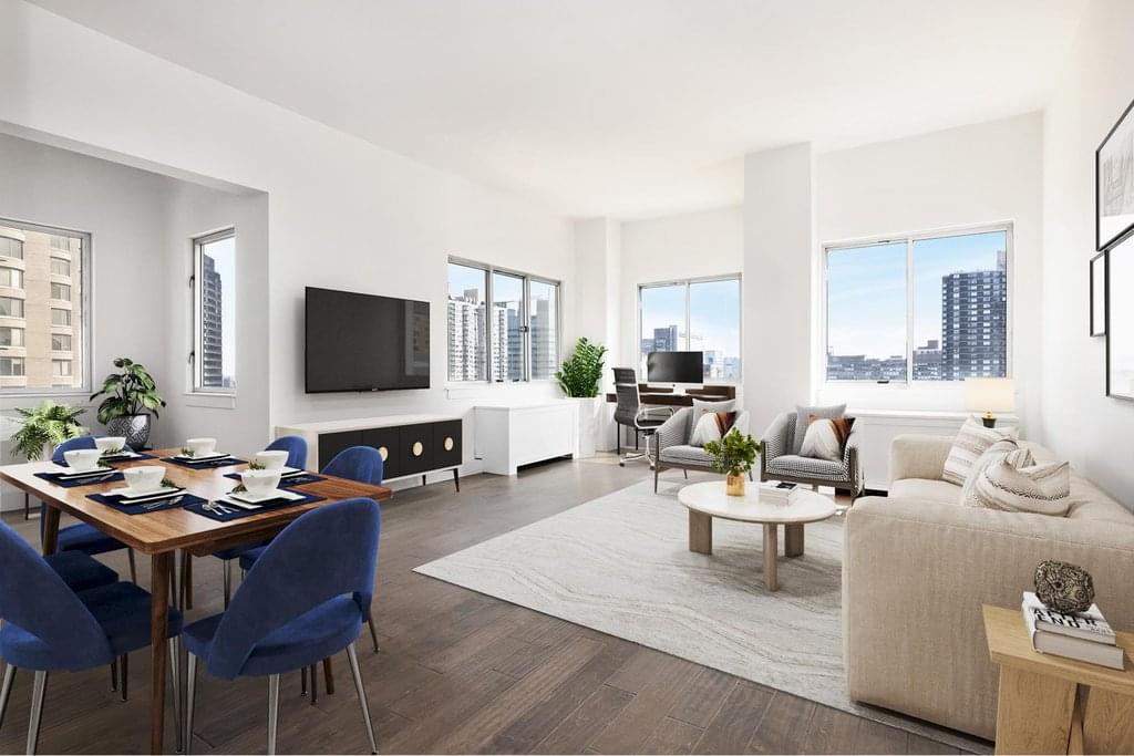 Landmarked and unobstructed City views from this high floor two bedroom, two bathroom condominium from the South, East and West exposures. The expansive living and dining room offers views of the East River, lower Manhattan and Empire State Building. The windowed kitchen has just been beautifully renovated and offers brand-new stainless-steel appliances, marble countertop and backsplash and white custom cabinetry. The chef's kitchen opens to the windowed dining alcove that could easily be closed off to make a home office or nursery/ third bedroom. The South and East facing primary suite boasts a walk in closet, an en-suite bathroom and stunning views of lower Manhattan and the Empire State Building. The second bedroom is also generously sized with ample closet space and south-facing views. This sunlit condo has an in-unit washer/dryer, hardwood floors throughout and is priced to sell.
