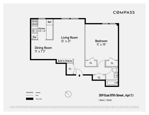 TOP FLOOR& RENOVATED, 1 Bedroom for sale at 309 east 87th Street. Apartment 7J, a rarity in the building with open views and natural light, provides an excellent floor plan with turnkey finishes and abundant storage. At the entry is a double coat closet. A useful living room/dining room combination provides versatility in how you use the space. The windowed kitchen has been fully renovated and features high-end stainless steel appliances incl. Bertazzoni range, white shaker cabinets, quartz countertops and under cabinet lighting. Separation between living and sleeping, a lengthy hallway leads to the white subway tiled bathroom. A generously sized bedroom with two closets is located off the hallway and adjacent to the bathroom. Additional details include: hardwood flooring, through-the wall air conditioning in living room and bedroom, and new noise-cancelling windows.
