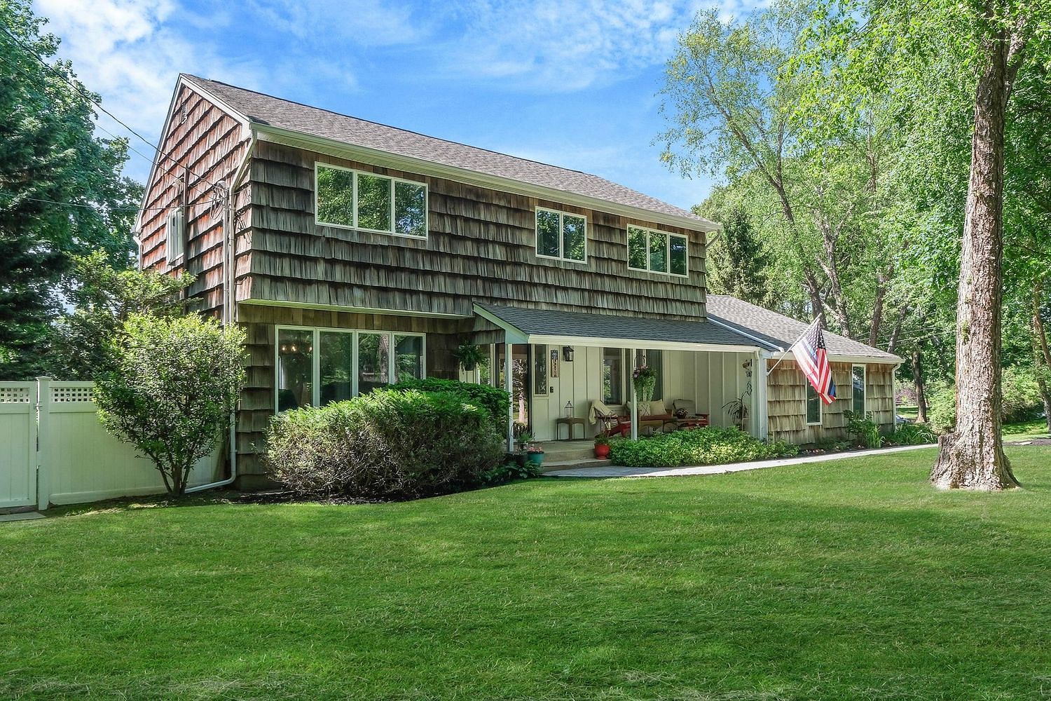 This beautifully updated colonial is move-in ready and conveniently located on a cul-de-sac. A short distance away from the Stony Brook Village amenities. The home has a welcoming covered front porch overlooking the cul-de-sac and is the perfect place to sit back and relax. Inside, hardwood floors flow throughout the bright interior, featuring an updated eat in kitchen opening to a vaulted den with a wood burning fireplace. A laundry room is conveniently located on the first floor. The primary bedroom includes a walk-in closet, a vaulted en-suite bath with a jetted tub, stand-up shower and dual sinks. The hallway full bathroom is also vaulted and updated. All four bedrooms are located on the second floor. Full unfinished basement. Central Air Conditioning. Two car garage. The spacious backyard has a inground swimming pool, large deck and poolside patio. Enjoy easy access to Stony Brook Village, Sand Street beach and Stony Brook University. Located within the Three Village School District.