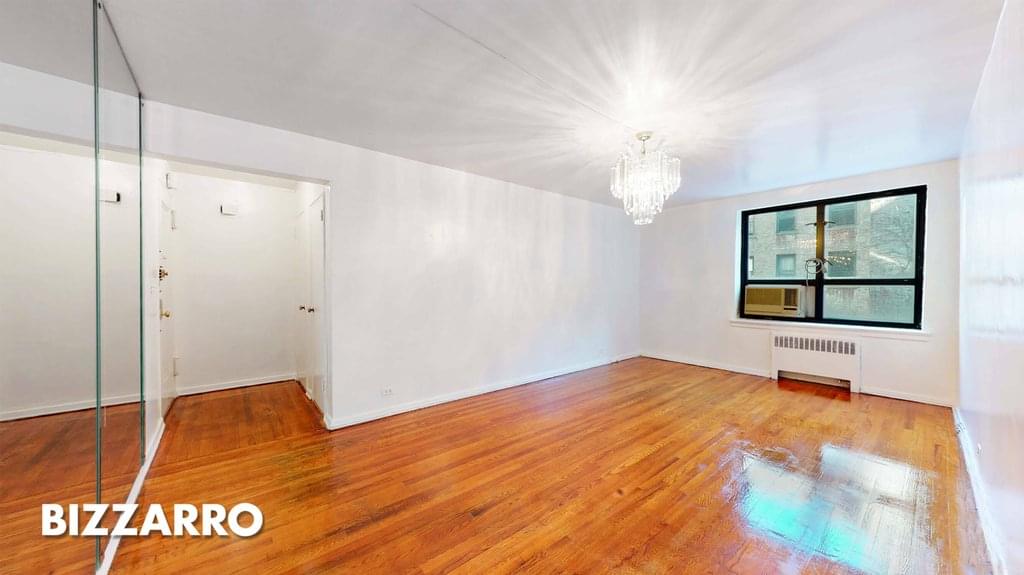 Entering, you'll immediately notice the large and inviting main living area. A wall of mirrors on the right complements the expansive vibe, with a crystal chandelier overhead and double windows to the left overlooking the courtyard below. The mid-century modern flat with tons of closet space is ready to accommodate all your furniture, your design plans and your New York City lifestyle. It's also pet-friendly and close to the park!