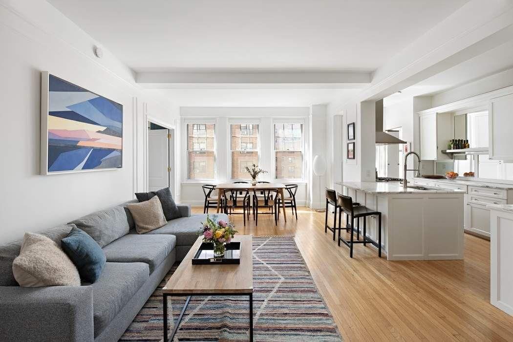 Welcome to this bright, airy, and beautifully appointed 2-bedroom, 1.5-bath corner residence on a high floor in a distinguished, pre-war cooperative on the Upper West Side. This sun-filled home offers open western exposures and excellent natural light throughout the day. A spacious entry foyer with two large closets sets the stage, leading into a warm, loft-style living and dining area framed by a wall of oversized windows. The elegant open, windowed kitchen, features marble countertops, stainless steel appliances and generous proportions. Both bedrooms are generously sized and flexible in layout, easily accommodating various configurations. Additional features include hardwood floors, abundant closet space, and the convenience of an in-unit washer and dryer.
