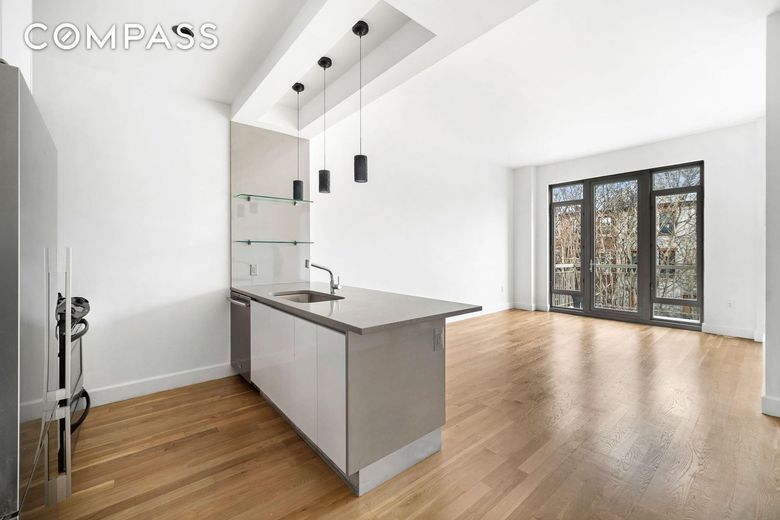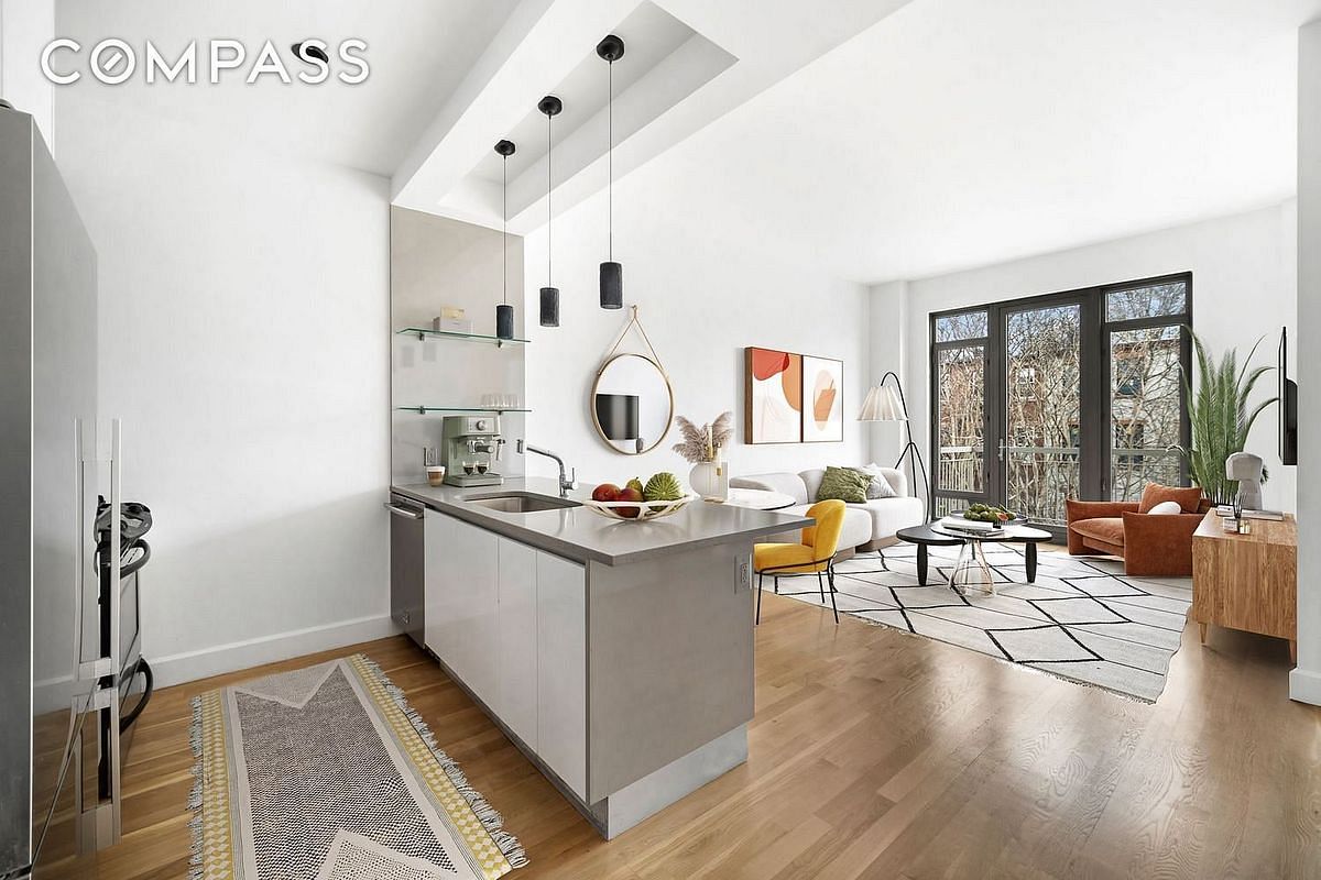 Welcome to Residence 3L at 315 Gates Avenue a sunny, pin-drop quiet, and stylishly appointed 2-bedroom, 2 bathroom (and 2 balcony) condo perched on the border of Clinton Hill and Bed-Stuy. Thoughtfully designed with both functionality and elegance, this home features an expansive open kitchen equipped with stone countertops, a full pantry, ample cabinetry, and premium Fisher & Paykel stainless steel appliances ideal for cooking and entertaining.