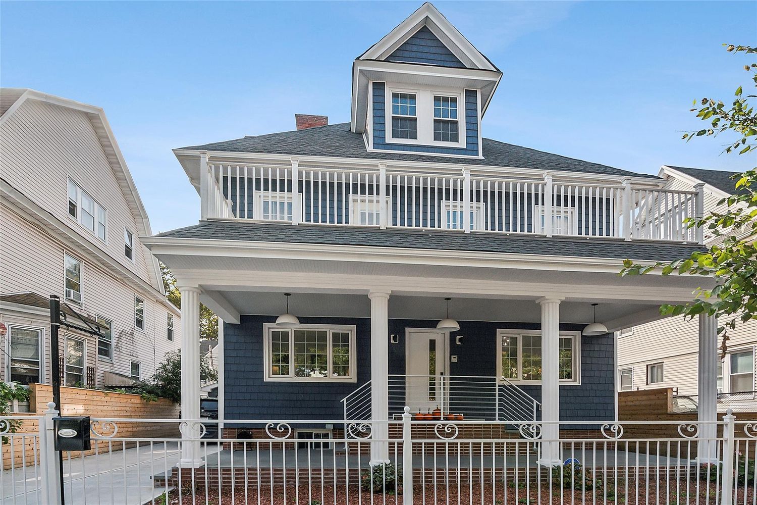 This meticulously gut-renovated 1920 Dutch Colonial Revival-style home, surrounded by stately Victorian mansions in Ditmas Park, offers unparalleled value and flexibility. Configured as a two-family, it features a pristine 2-3 bedroom owner’s duplex above a charming 2-bedroom unit with a finished basement. Every inch of this home has been thoughtfully updated, blending historic character with modern convenience.