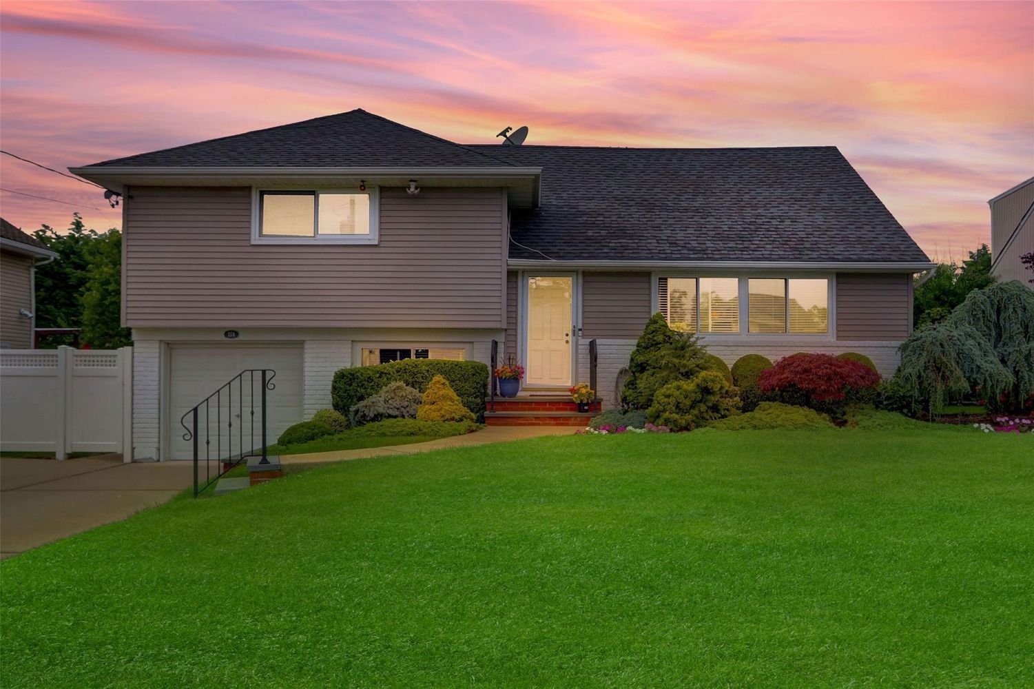 spacious living room, den for entertaining/ play room area, updated bathrooms, Hi Hats, Laundry room and utility room. generous size bedrooms with lots of closets, plus a king size primary suite, with primary bath and walk in closet, full attic and eave storage, 4 A/C units, Other features include updated windows, upgraded electric,separate hot water heater, in ground sprinkler, beautiful landscaping, 1 car attached garage, close to elementary school # 8, shopping, restaurants, LIRR, 15 minutes to beach, appearance MINT