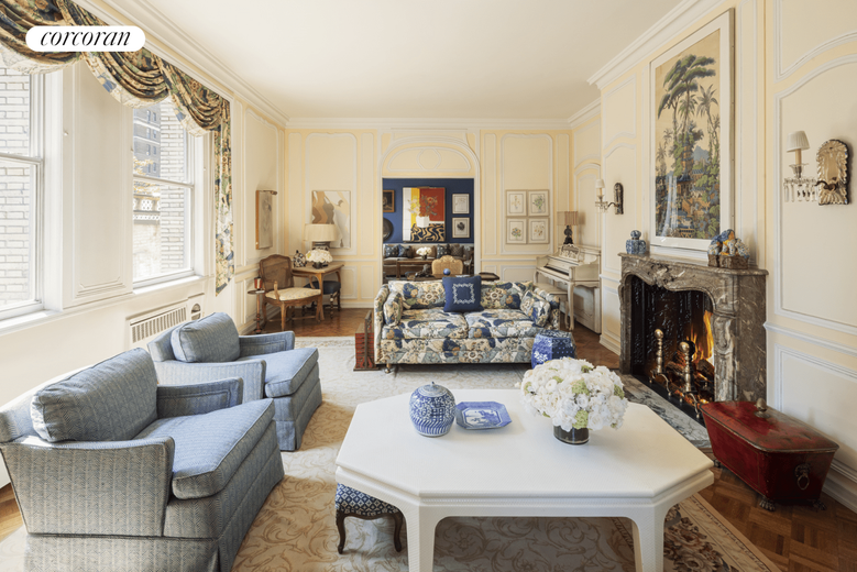 Located in The Verona, one of Manhattan's most distinguished white-glove cooperatives, this grand and gracious four-bedroom, four-and-a-half-bathroom residence presents a rare opportunity to create a bespoke home within a storied pre-war setting. This elegant twelve-into-ten room corner apartment features soaring 10-foot ceilings, four wood-burning fireplaces, oversized windows, and exceptional room proportions.