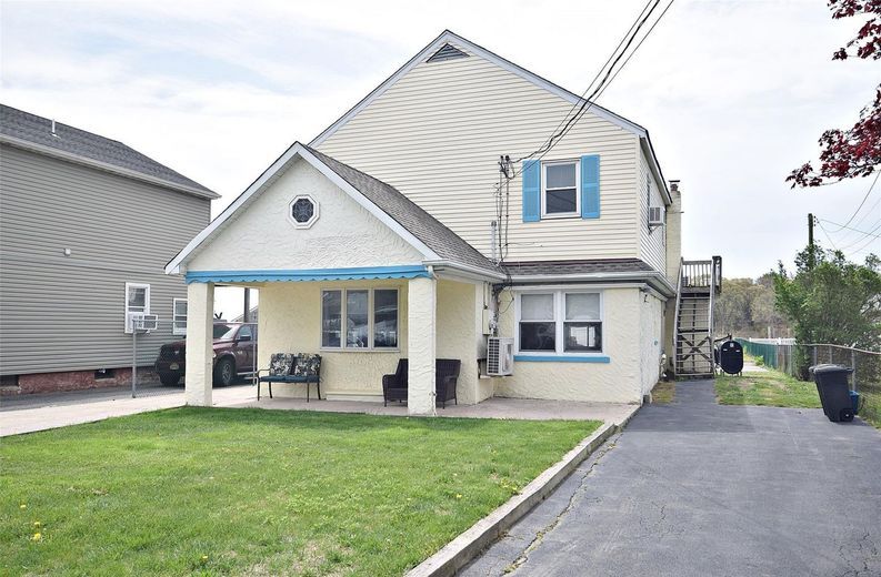Discover coastal charm at its finest in this spacious 5-bedroom waterfront home, perfectly positioned to capture stunning water views from every angle. Designed for flexibility and comfort, this residence offers a separate entrance to the upstairs level and abundant space for guests. Enjoy authentic waterfront living with private boat docks and a generous backyard—ideal for entertaining, gardening, or creating your own outdoor oasis. With its bright, coastal feel, this home beautifully blends beach-house charm with practical everyday functionality, making it an excellent choice for a year-round residence, vacation retreat, or investment property. This versatile property features two self-contained levels, offering potential for a mother-daughter layout with proper permits. Each level includes its own laundry area, with the first floor offering three bedrooms and one bathroom, and the second floor providing two bedrooms and an additional full bathroom. A 50-foot bulkhead adds to the appeal for boating and waterfront enjoyment. Recent upgrades enhance both comfort and peace of mind, including new carpet, fresh paint, upgraded electric, new appliances, a serviced septic system, and a brand-new water heater. Move-in ready and thoughtfully updated, this waterfront gem delivers the perfect blend of charm, convenience, and coastal lifestyle.