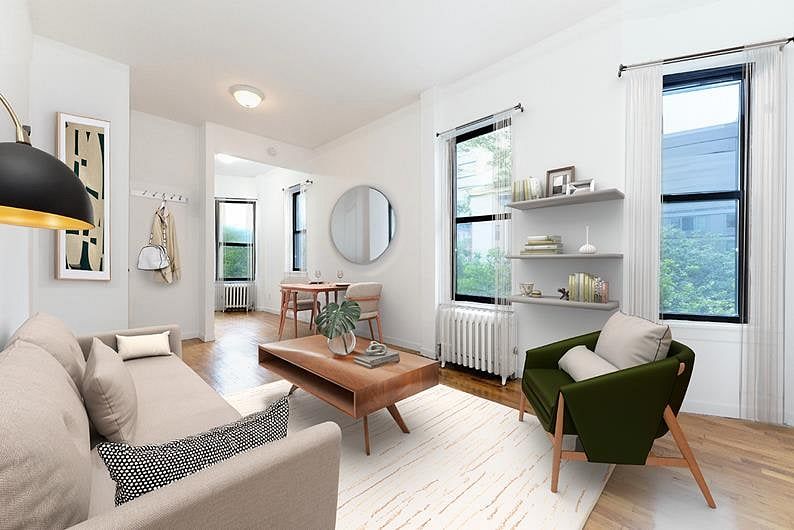 Sunny one bedroom floor-through. Sponsor-owned apartment, NO BOARD APPROVAL. LOFTY apartment in great condition features windowed kitchen that can accommodate dining. Windows galore, four East facing in the living space and kitchen and two South facing in the bedroom. Additional features included two oversized closets, HIGH ceilings, hardwood flooring, open, city, Empire State building and tree-lined street views. This is a well-priced sponsor apartment in a great neighborhood convenient to terrific restaurants, shops, and all transportation.