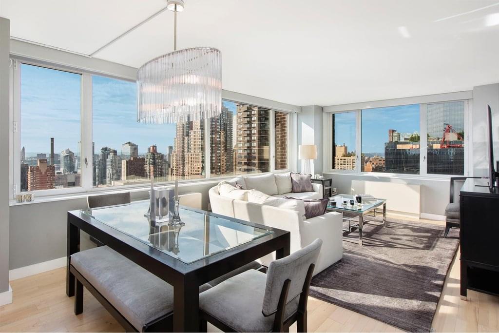 While at home, relax in your Corner Living Room with Oversized Windows that Span from End-to-End, giving you stunning Hudson River, Central Park, Lincoln Center and George Washington Bridge Views. This gorgeous home is Sunny all day, has beautiful Sunsets in the afternoon and at night see the buildings of NYC light up from this Sky-High oasis.