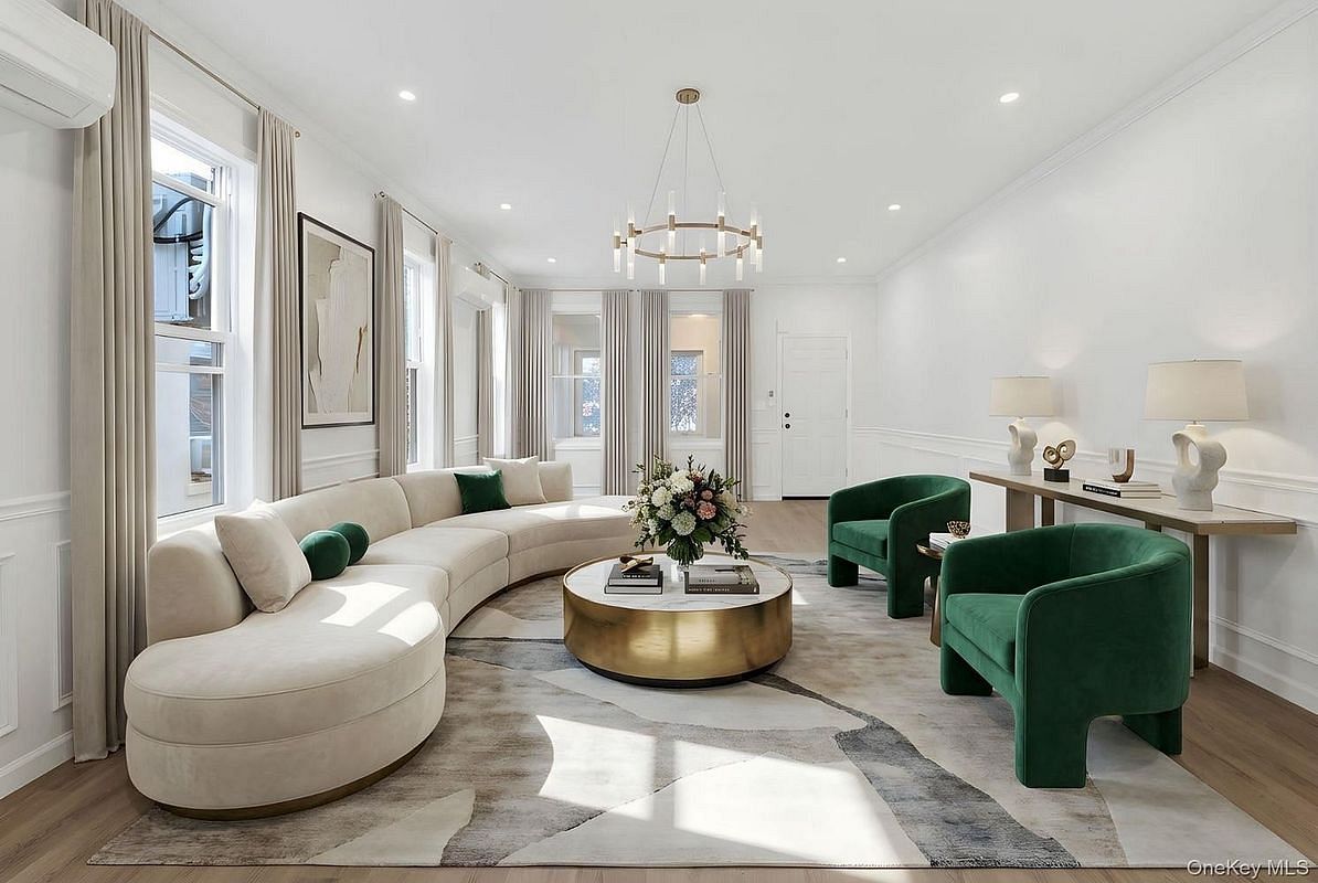 The home features a total of three spacious bedrooms and two and a half well-appointed bathrooms, providing comfort and convenience across every level. The interior showcases refined trim work, high ceilings, and recessed lighting throughout, creating a bright and elegant atmosphere. The brand-new kitchen and bathrooms have been tastefully designed with contemporary finishes, while the ductless heating and cooling system ensures year-round comfort.