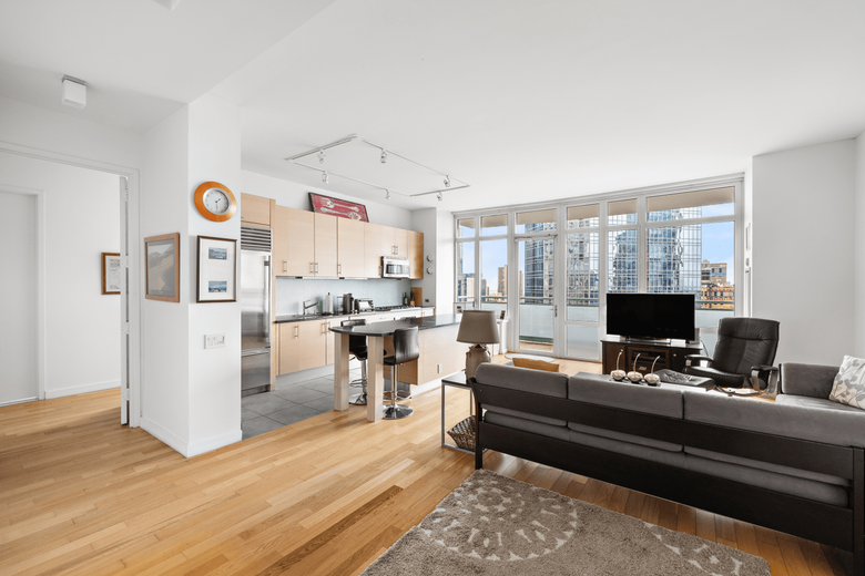 Soaring above the city on the 34th floor, this stunning 2-bedroom, 2-bathroom residence at 325 Fifth Avenue offers an unparalleled blend of space, style, and sophistication, in addition to an abundance of natural light. Spanning 1,280 square feet, plus an expansive 135-square-foot private balcony, this high-floor sanctuary boasts floor-to-ceiling windows that capture breathtaking panoramic city views.